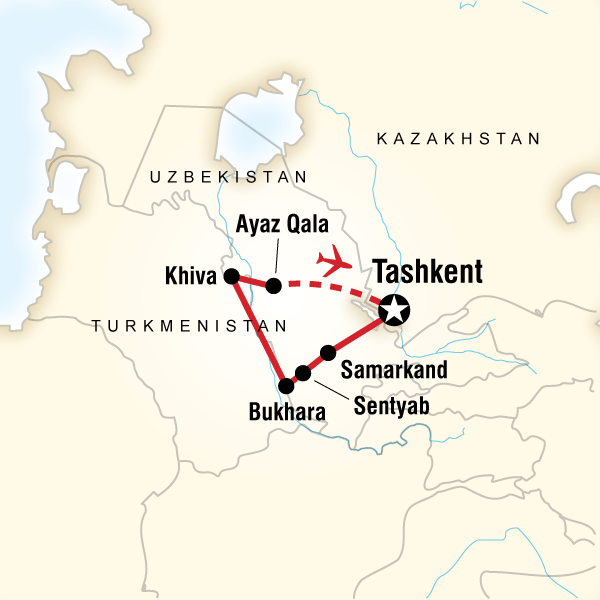 From the remarkable mosques and architecture of Tashkent to the ancient capital of Khiva, follow the legendary Silk Road through the exotic best of Uzbekistan. Indulge in steamy marble hammams, roam the twisting lanes of ancient bazaars and explore the monuments and minarets of Samarkand. Your CEO will lead the way, taking care of the hassles and leaving you free to explore a land rich in culture and history. For a great taste of enigmatic Uzbekistan, this 12-day adventure serves up only the best.