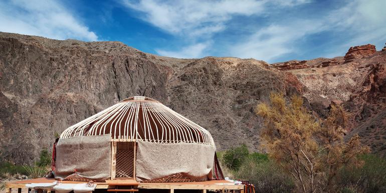 Indeed, nomadic traditions are alive and kicking in Kyrgyzstan. You can take to the hills around Lake Issyk-Köl, the earth’s second-largest alpine lake, with a trained eagle to hunt rabbit or cheer wildly alongside the locals during a game of kok boru, a ferocious battle in which mounted riders wrestle one another for the corpse of a headless goat. Lake Song-Köl in Central Kyrgyzstan is a similarly picturesque spot, ideal for camping and getting to know the herders who bring their animals here in summer months.