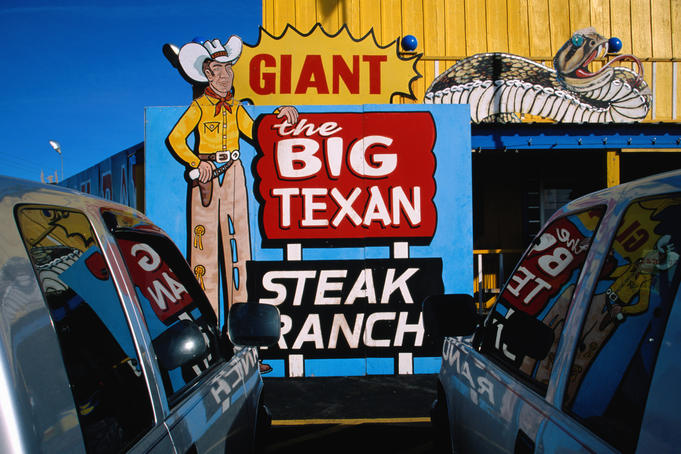 Getting into Amarillo, the Big Texan Steak Ranch & Motel – with its giant cowboy sign, flashing lights, longhorn limousine and shooting arcade – is as kitsch as they come. The route then wanders through Vega to Adrian, where the 1950s diner-style Midpoint Cafe marks the halfway point between LA and Chicago, and serves some darn good ‘ugly crust’ pie.