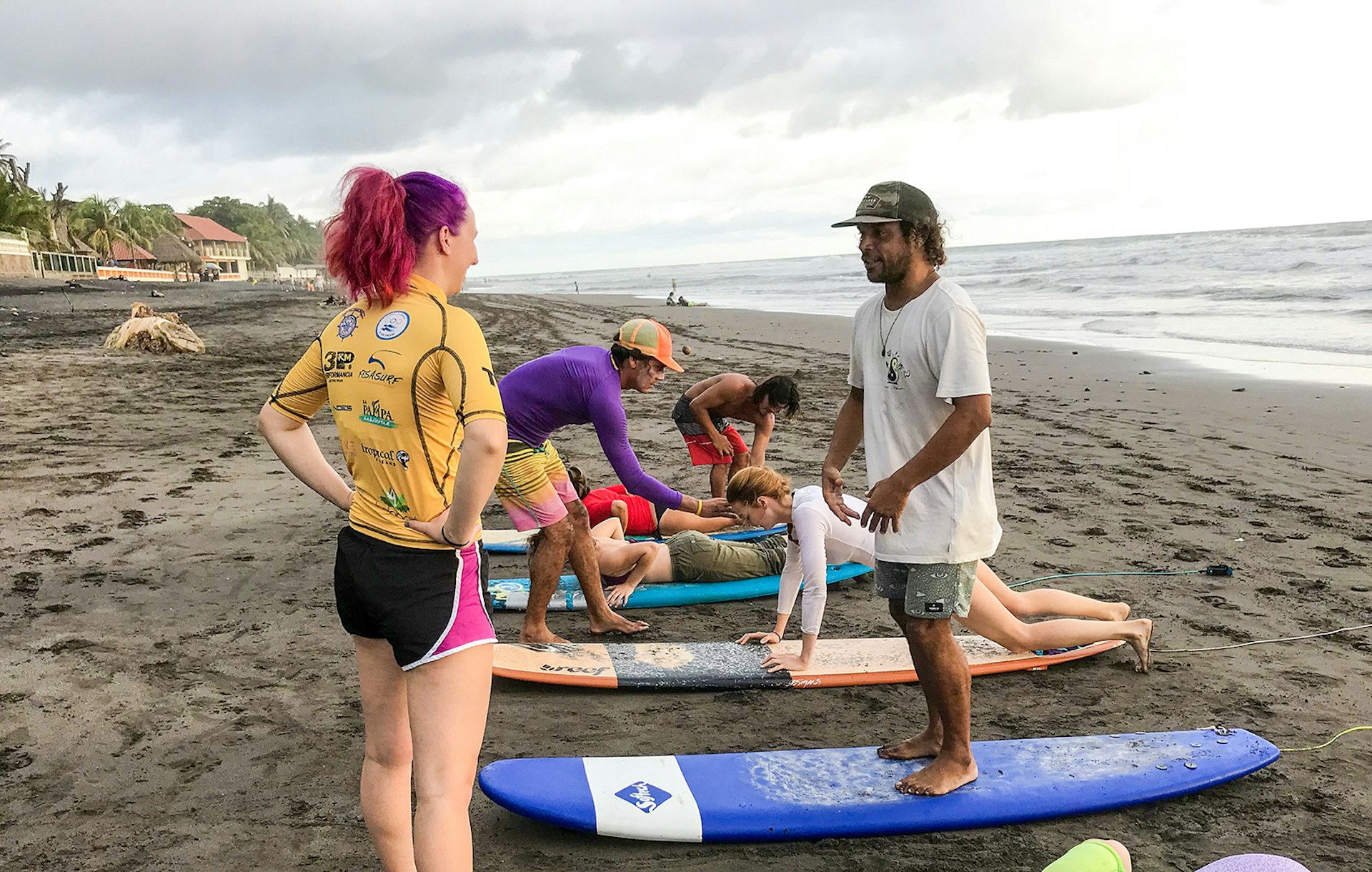 “If you’re going in for a kiss, you’re not going to do it hard. You’re going to be gentle. That’s how you need to think of surfing. Be gentle with the board,” says Jorge "Negro" Osorio, laughing as he bobs with the oncoming swells of the Pacific. Osorio is a surf instructor in El Tunco, a popular weekend spot just under an hour outside of San Salvador. Osorio originally worked as a waiter in a local restaurant, teaching himself English to make better tips; now he helps novice surfers learn to catch waves off of one of Central America’s most renowned surfing coasts. “You are thinking too much. You just have to feel it and go!” Osorio advises. Successful surf runs (and subsequent wipe-outs) are greeted with a hearty laugh and a “hang-loose” hand sign.