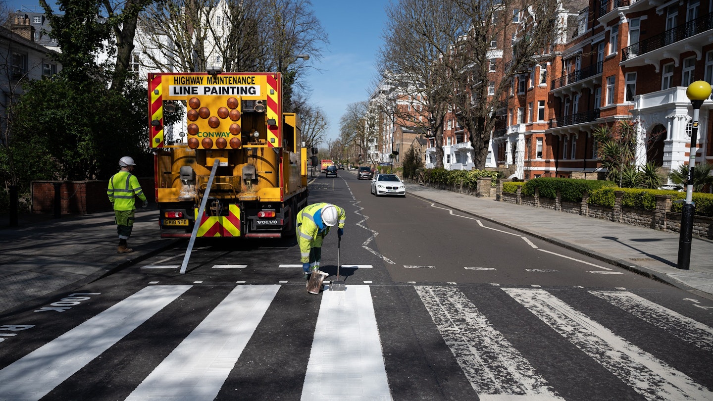 The zebra stripes of the world’s most recognised pedestrian crossing – which even has its own webcam – had been faded for years with the high amount of footfall, but they are once again as gleaming white as when the cover photo was taken.