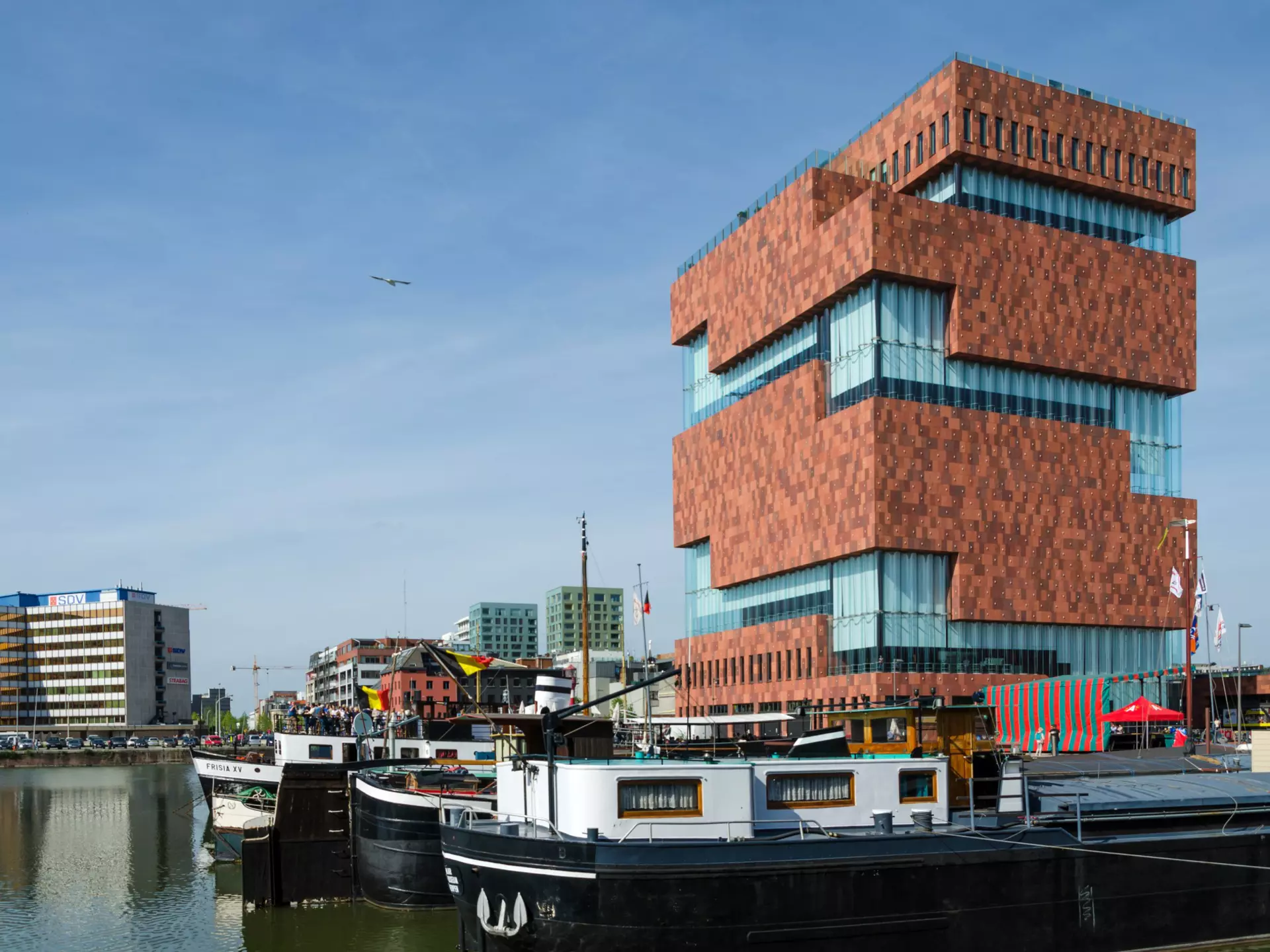 Antwerp’s architectural heritage is what might be called textured, rather than historically pristine, with a well-preserved Baroque centre and joyfully decorative Jugenstil inner neighbourhoods like Zurenborg, along with many late 20th-century and contemporary buildings throughout, a result of a serious WWII bombing. It’s also now known for its interesting, daring contemporary buildings, with the Museum aan de Stroom (MAS) – a deconstructed sixty-metre high tower in the waterfront warehouse district of Eilandje – setting the standard in 2011. Inside, you’ll find a fluid-flowing collection of objects that form a fascinating narrative exploring Antwerp’s mercantile and maritime history and the complex, ever shifting politics of both the city and of Belgium itself. (No big deal if you’ve yet to come across a Luc Tuymans, there’s one here, but a tip: his massive mosaic artwork Dead Skull is only visible from the 5th floor up.) The two Michelin-starred restaurant ‘t Zilte sits on its top floor, known for its stellar local produce and vivid plating, as well as its panoramic views across the city’s spires and down the Scheldt' to the working docks.