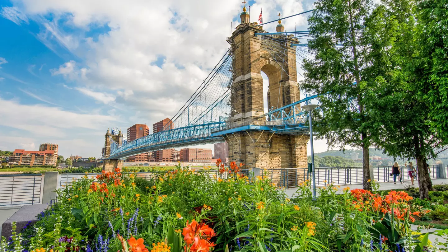 The 186-acre Eden Park links Cincinnati’s Mount Adams and East Walnut Hills neighborhoods with slivers of greenspace, gardens, nature trails and architectural gems like Mirror Lake and the Bettman Fountain. With its meandering hilltop locale, Eden Park delivers panoramic views of the Ohio River. Its Krohn Conservatory, an indoor botanical garden, houses more than 3500 international plant species in its glass Art Deco digs. The Tom Jones Commons, unveiled in spring 2021, brings new walking trails, wetlands, a boardwalk and a natural play environment to Eden Park’s western end.
