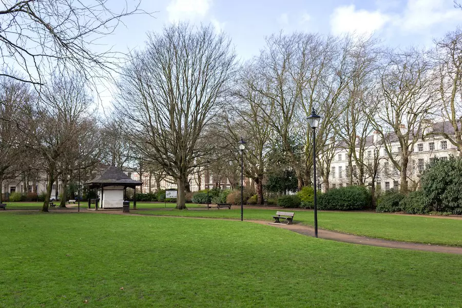 Enjoy the fine Georgian architecture surrounding Falkner Square Gardens