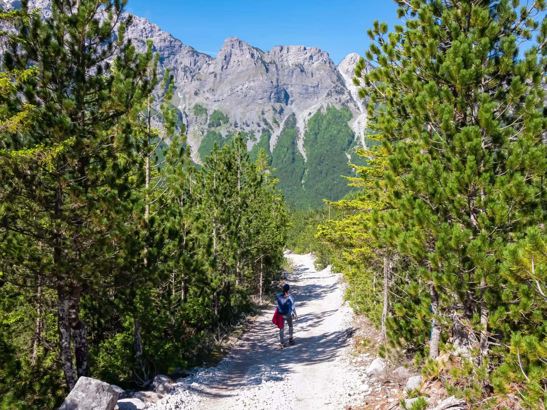 Once you get to Theth, two hikes are essential. The first leads to the Blue Eye, through a forest, over rivers and finally to a vibrant blue natural spring. This hike is easy to moderate, and very doable for less-experienced hikers.