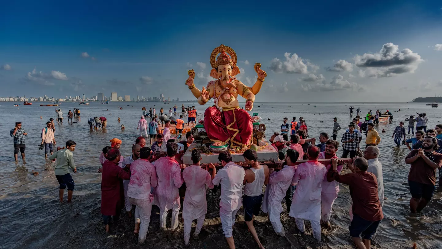 Celebrating Ganesh Chaturthi, Mumbai, India. Sandycinecam/Shutterstock