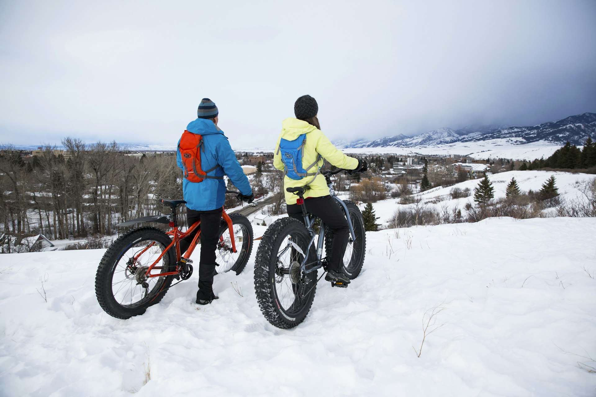A fat bike is essentially a mountain bike equipped with chunky double-width tires for riding on packed snow. This increasingly popular sport extends the biking season, opens up whole swatches of winter terrain to non-skiers, and allows you to push your riding to new limits. Don't worry too much about wiping out – the snow will cushion your fall!