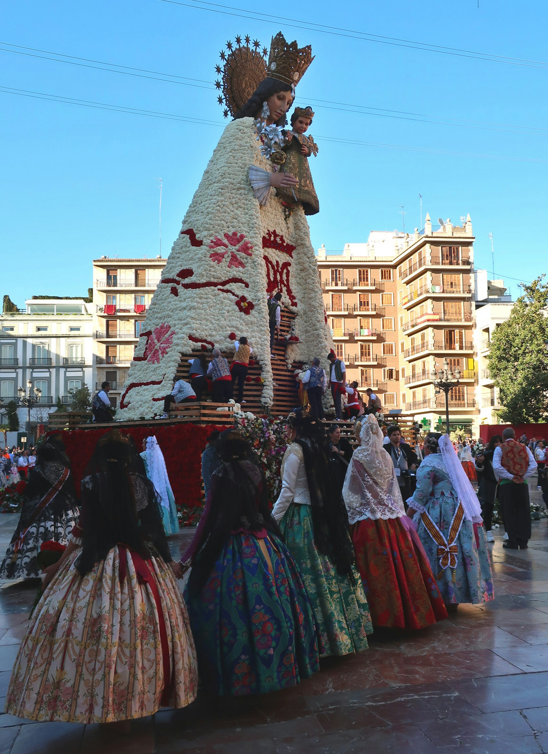 One of the most important features of the festival holds a deep spiritual significance for Valencians. The Ofrenda de Flores (Flower Offering) takes place over two days (17 and 18 March) and sees as many as 100,000 people parading through the streets, bringing floral tributes to decorate a 30m-tall statue of the Virgin Mary.