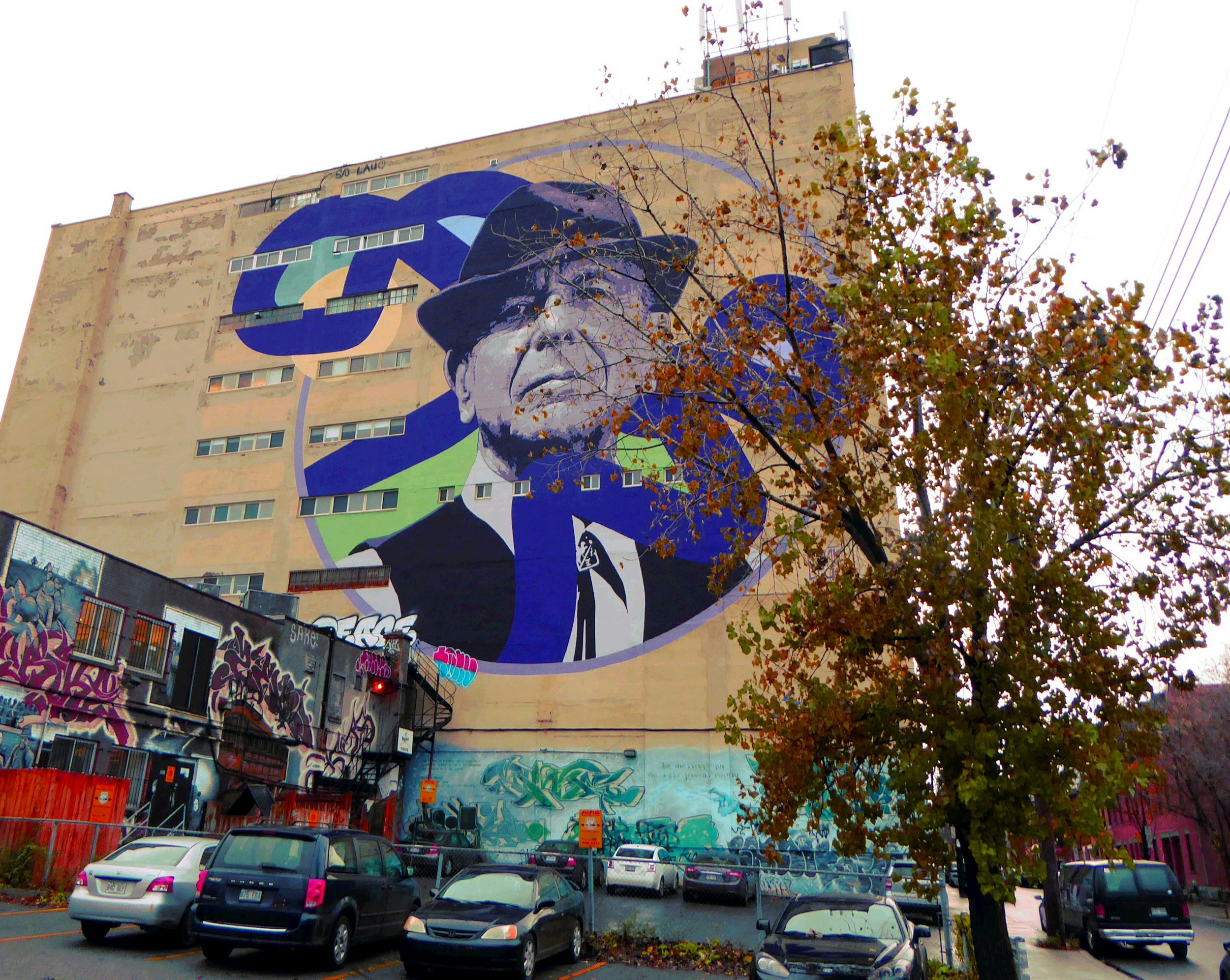 If you’re lucky you might stumble onto little Rue Napoleon, where you’ll find a mural of Leonard Cohen, Canada’s recently departed poet laureate, looming over his childhood home, appreciating the view, unbothered by the rain.