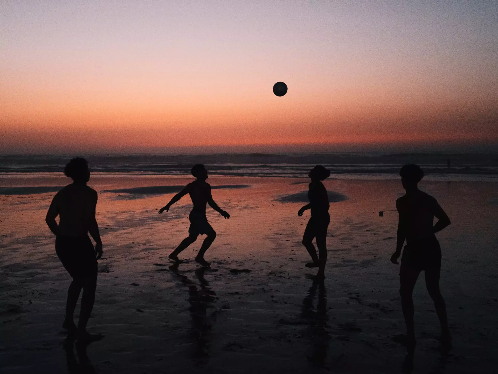 Young men kicking a soccer ball at a beach in Casablanca. Morocco. Andrea Vilchez