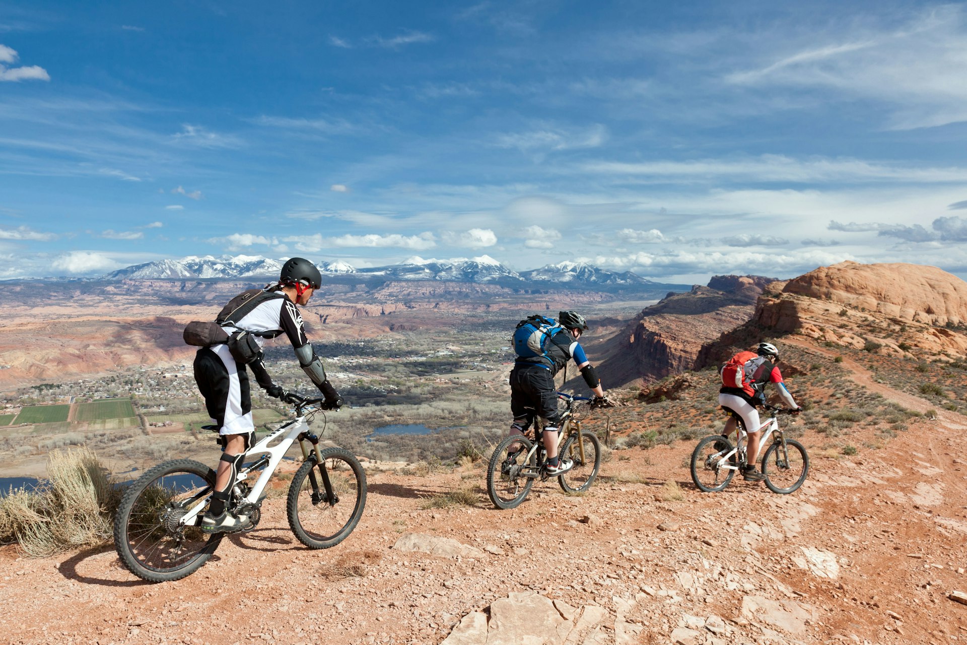 People ride around Moab on skinny tires too. Put on the spandex and hit the road with amazing desert rides to Island in the Sky, Deadhorse Point State Park and along the Colorado River. The Park to Park Trail takes you from Moab into Arches National Park – around a 30-mile ride – or you can turn off at the Colorado River and follow the path along Hwy 128. The best riding is had in spring or fall, when the temps are cool.