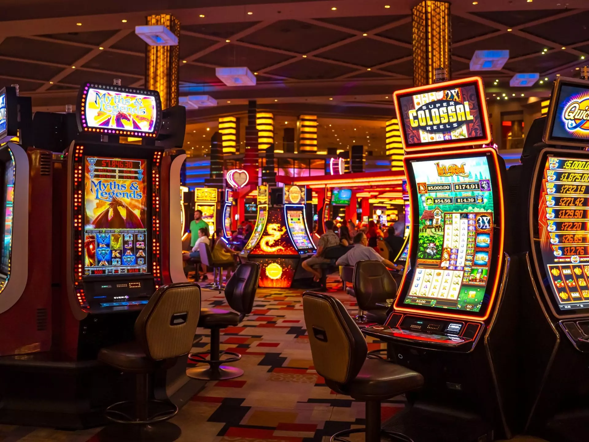 Slot machines come in thousands of themes, with different pay lines and jackpots. Among the most omnipresent machines citywide are Megabucks and Wheel of Fortune, which have progressive statewide jackpots that often reach the million-plus level. Sports betting is also a significant draw: you can bet on everything from big-time NFL battles to a small soccer match in Colombia. Some casinos even have bingo halls.