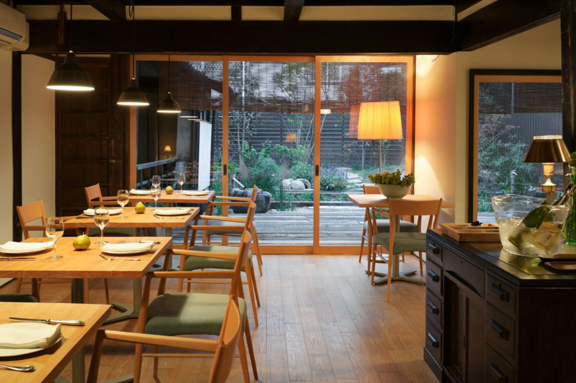 Near the center of Imaicho, Tama is a charming farm-to-table restaurant with a focus on local ingredients cooked in a French style. The restaurant is set in a renovated machiya, offering a sophisticated blend of traditional and contemporary Japanese architecture. Both lunch and dinner are omakase (set menus) of colorful, creative and artfully plated dishes, such as local grilled sanma (Pacific saury) fish, new onion potage with vinegar jelly, Yamato pork sausage wrapped in cabbage, and Nara strawberry soup with white chocolate gelato.