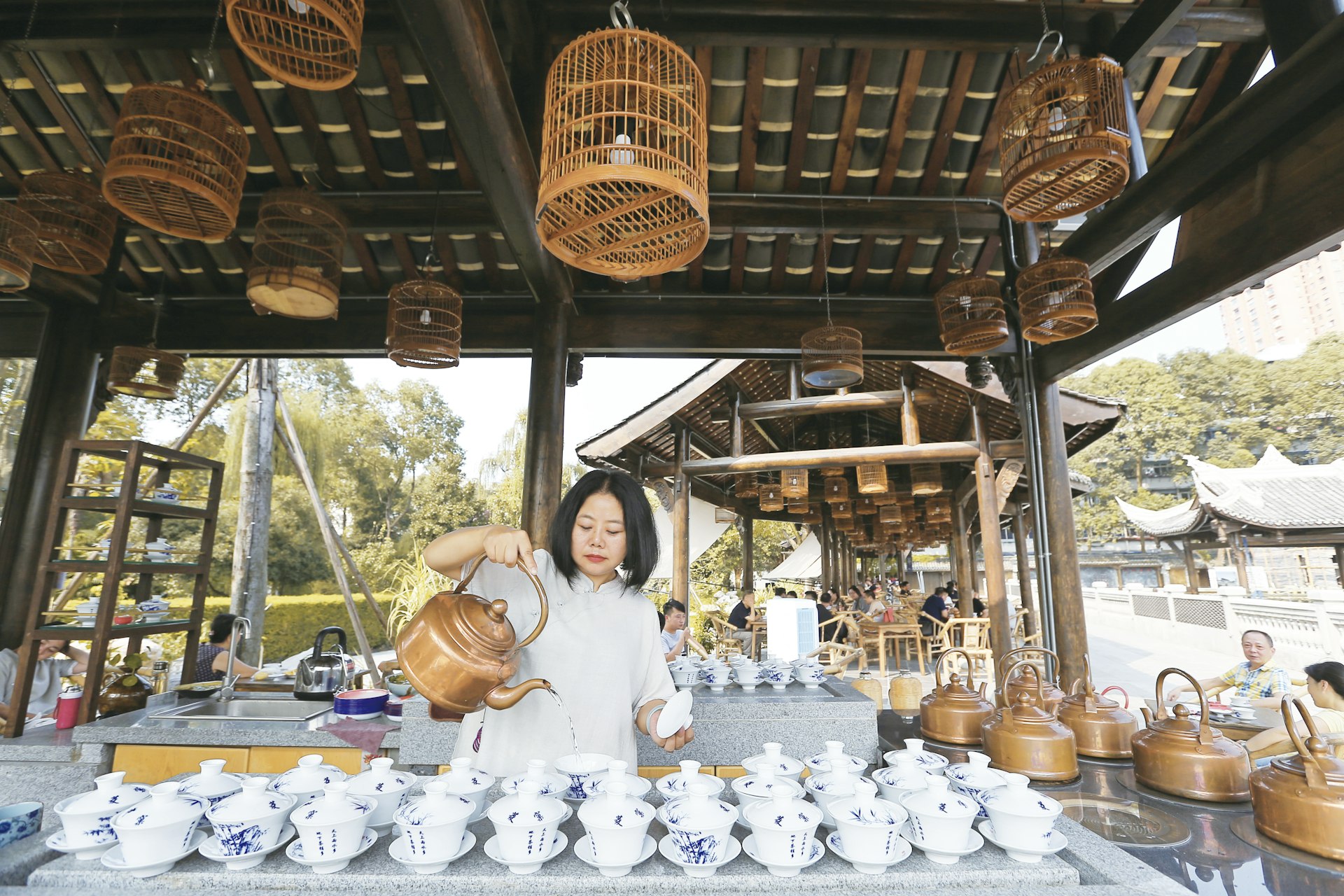 Across China, parks form a vital part of modern city life, as they're a chance for locals to step off the busy streets and switch down a gear or two. But despite often being located in the center of modern metropolises, they are also places where old traditions hold strong. People's Park, for example, is the most central of parks in Chengdu, and it's a magical city-center escape. It houses He Ming Teahouse, a century-old establishment where you can while away an afternoon sitting on a bamboo chair, drinking cups of tea. Culture Park gives visitors a similar taste of Chengdu traditions; you'll see locals practicing water calligraphy, performing taichi, playing Chinese chess, or singing and dancing with friends. And it's sandwiched between Chengdu's oldest Taoist temple, Qingyang Temple, and one of its best opera theatres, Shufeng Yayun.