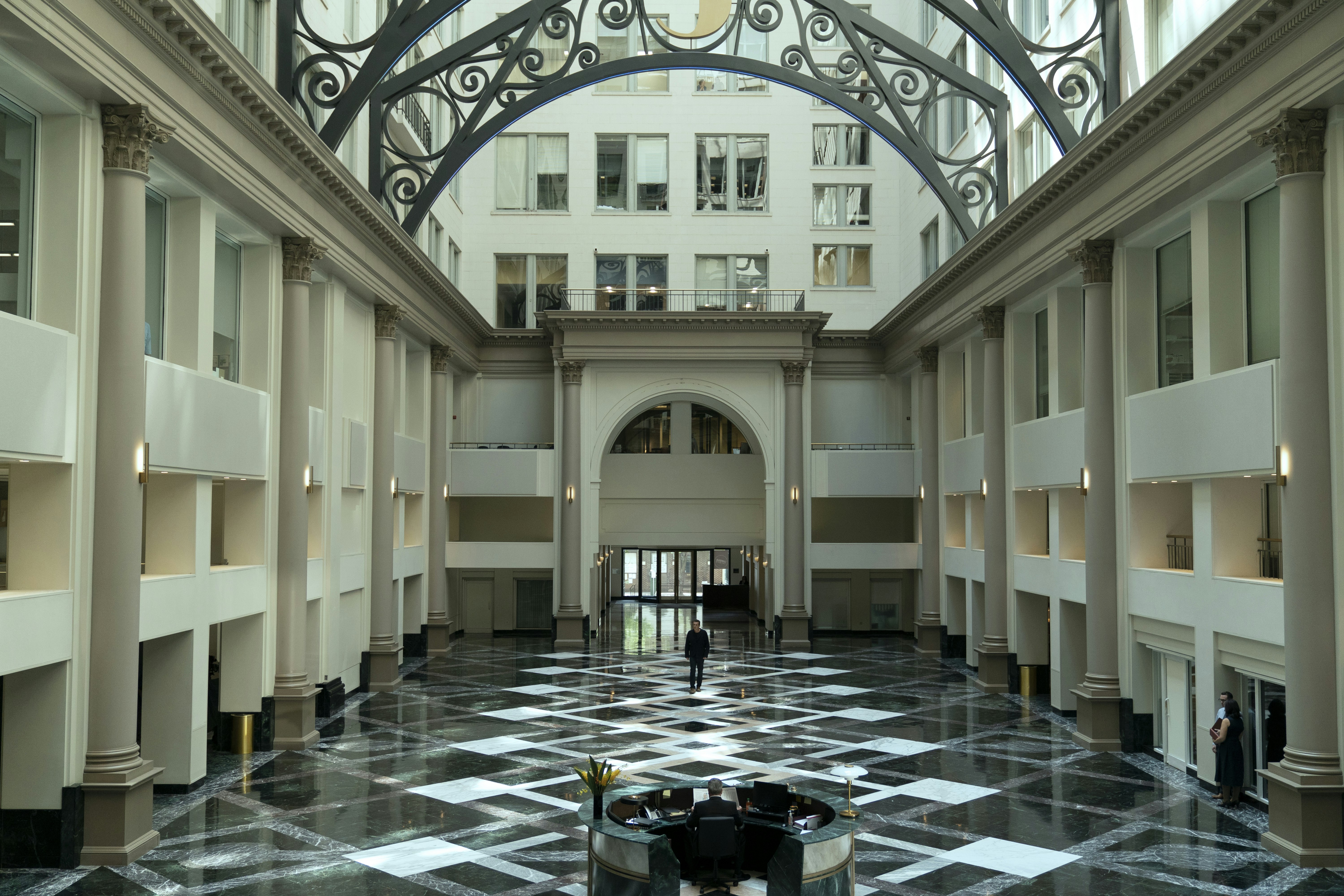 The Curtis overlooks Washington Square, on Walnut and 6th Streets, and one of the five original public squares envisioned by William Penn when he founded Philadelphia in 1682. In one scene, protesters swarm the outside of the Curtis Center, showing off a backdrop of the leafy, 6.4 acre park. Stop into Talula’s Daily on the west side of the park for a latte and freshly baked scone, and claim a bench in the typically protester-free, peaceful park. (Watch out for aggressive squirrels, though.)