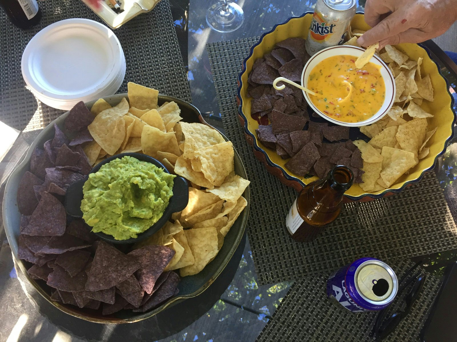 Blue corn chips with homemade guacamole and green-chile queso – a popular New Mexican appetizer © Megan Eaves / Lonely Planet