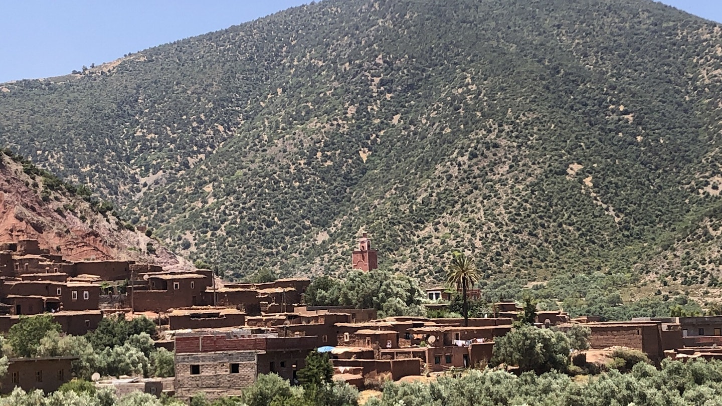 With three kids in tow, a 4WD trip seemed the best way to get us all (including my injured husband) deep into the mountainous environment. After sorting a driver, we were driven up a narrow road clinging to the mountainside. As inhospitable as the steep slopes looked, they were surprisingly very much inhabited. At every turn of the road there were villages clinging to the rocks, with neat green fields pooling below in the valleys. And barely visible above us were always more mud-brick dwellings, each seemingly merging with the hillside under a pantone-blue sky. Along the way we passed olive groves, the odd highlighter-green field, headscarved girls walking hand in hand, and more donkeys wavering under the weight of massive haystacks – it was a captivating experience for us all. We could have gone on and on as the narrow road continued to zigzag into the distance like a scar, but we stopped for sweet mint tea instead. Having quickly struck up a conversation with some locals, my eldest sat at another table: he’d found a rich stream of bonhomie as he knew something about Moroccan football.