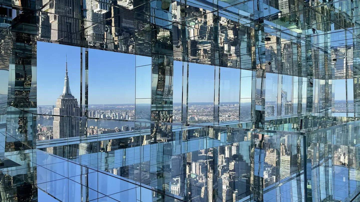 Constructed over two stories, the observatory looks and feels like you’re standing in a massive mirrored box. (The space can get so bright that we were handed sunglasses on the way in, and visitors are encouraged to bring their own.) A stroll around it reveals Google Maps-worthy views over the shining Chrysler Building, Central Park, the Hudson River and Bryant Park. But it will also show you infinite reflections of yourself and your fellow visitors and create the sensation that you're floating along the reflective floor.