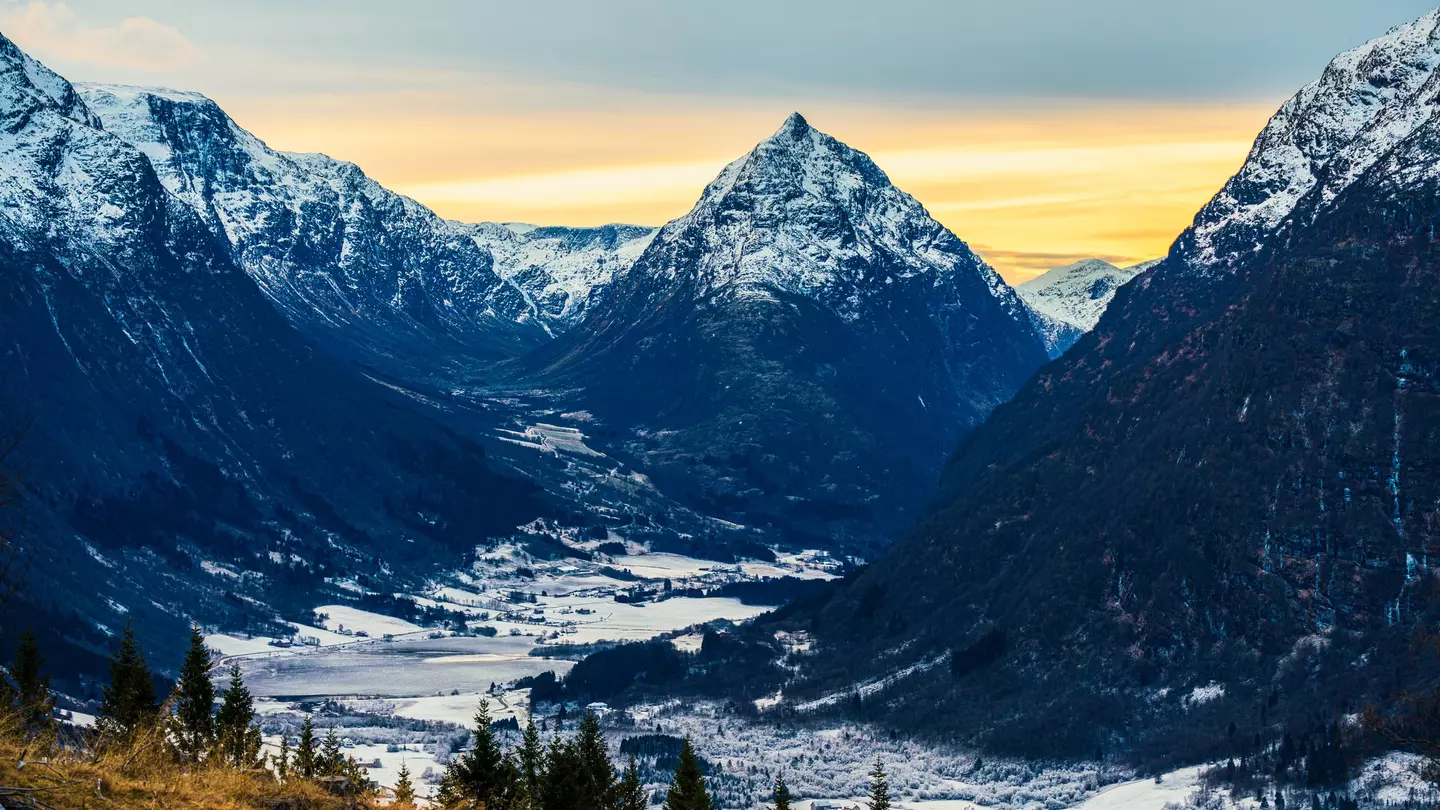 Snowcapped mountain peaks in Vestland, Norway. Sergio Formoso/Getty Images