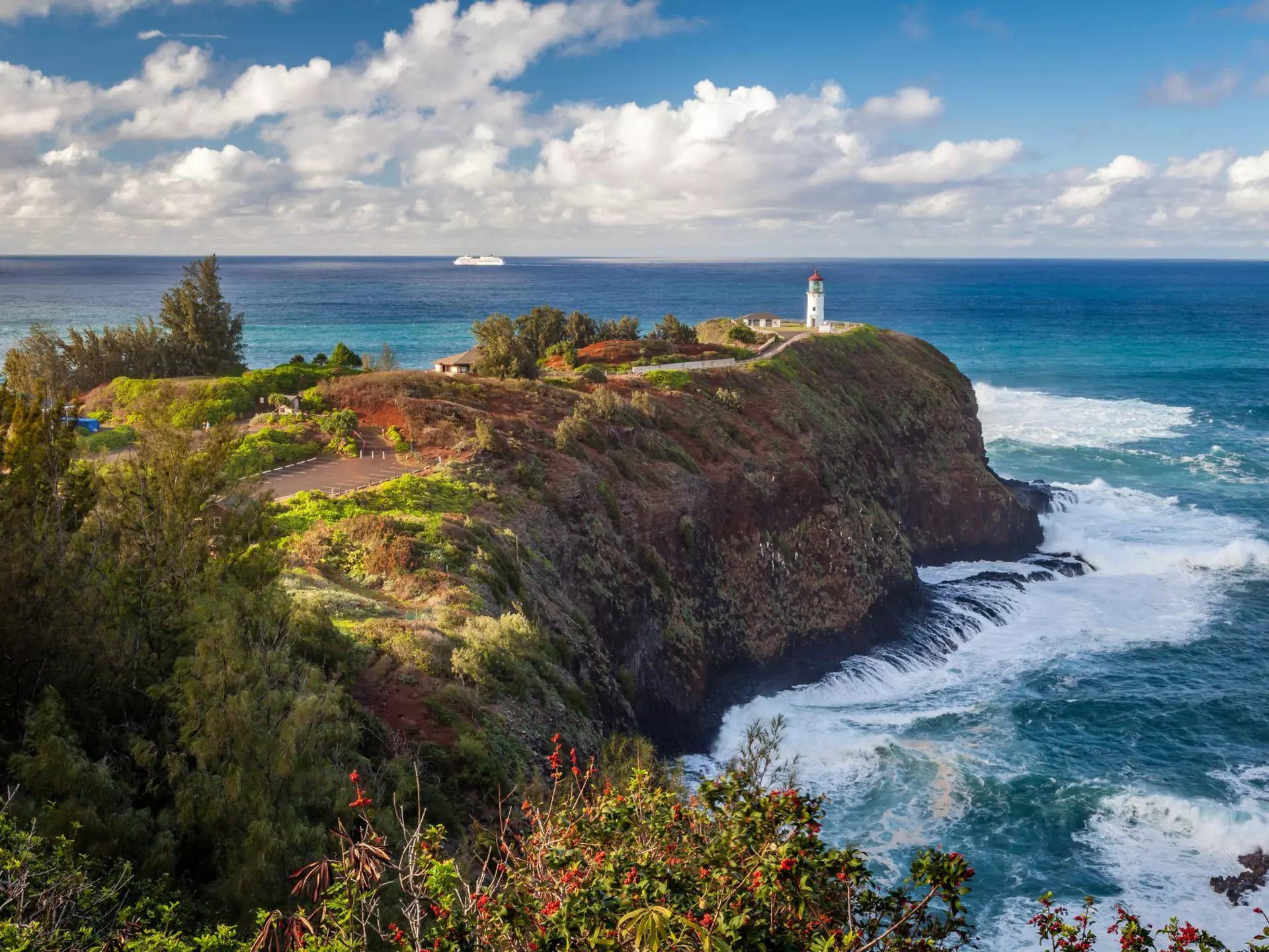 It’s not just about soaring tropic birds, but sweeping ocean views that include the possibility of an occasional whale breaching in the distance. Even just overlooking the bluffs from the cul-de-sac fronting the lighthouse is worth it. Redfooted boobies, wedge-tailed shearwaters, red-tailed and white-tailed tropic birds and Laysan albatross are among the birds you could see, or Kaua‘i’s nene, the endangered Hawaiian goose. Look for sea turtles and spinner dolphins in spring and summer, and for humpback whales in winter. You’ll also see Moku‘ae‘ae Island, which is teeming with protected wildlife.