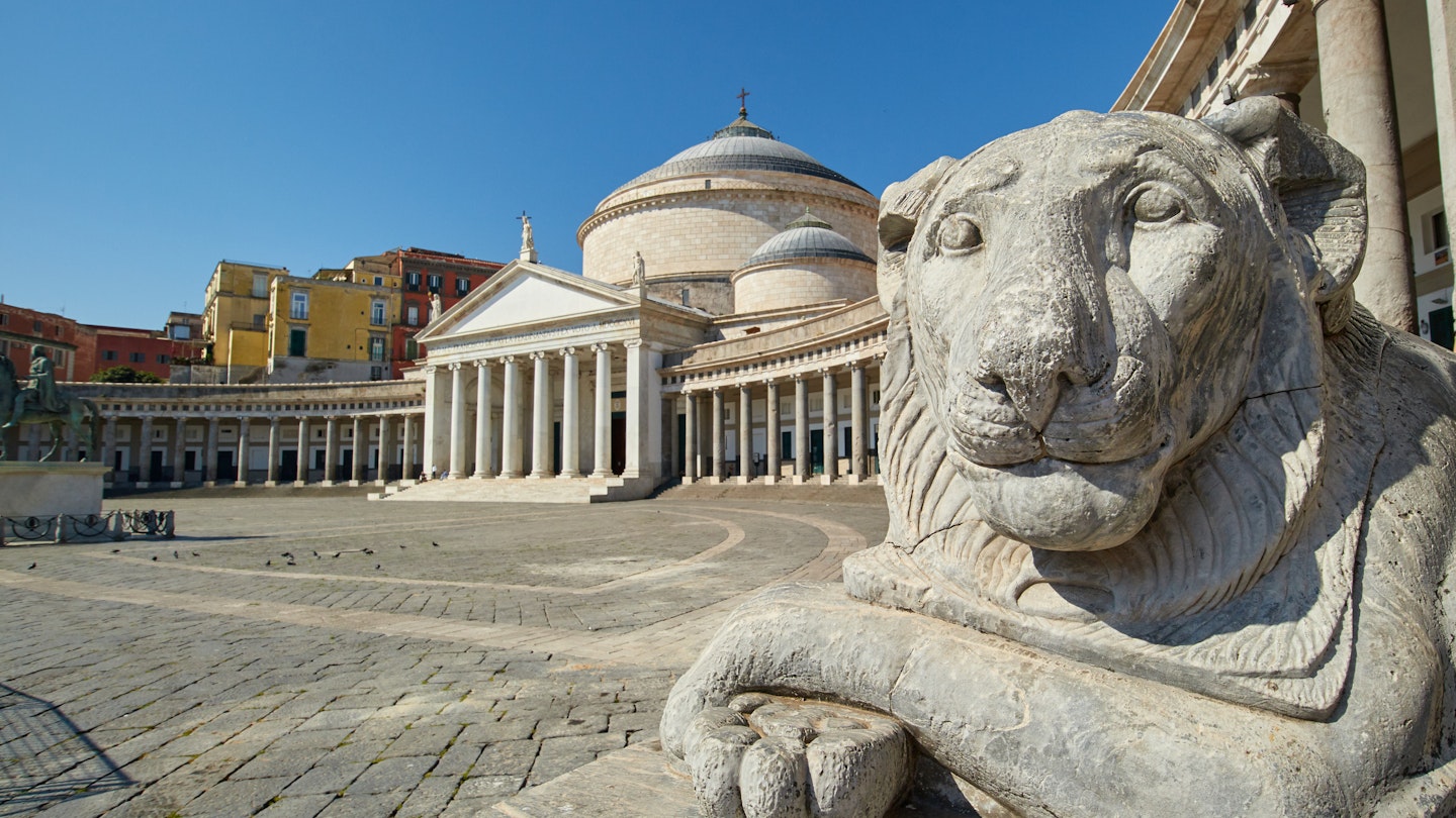 Piazza del Plebiscito is the largest piazza in Naples and one of the largest in Italy. Construction of the Vesuvian volcanic rock-paved piazza began in 1809 as a tribute to Emperor Napoleon. The circa 1600 Palazzo Reale (Royal Palace) and the neoclassical Basilica di San Francesco di Paola face the massive square, while a monument to Charles VII of Naples (later Charles III of Spain) stands at its center.