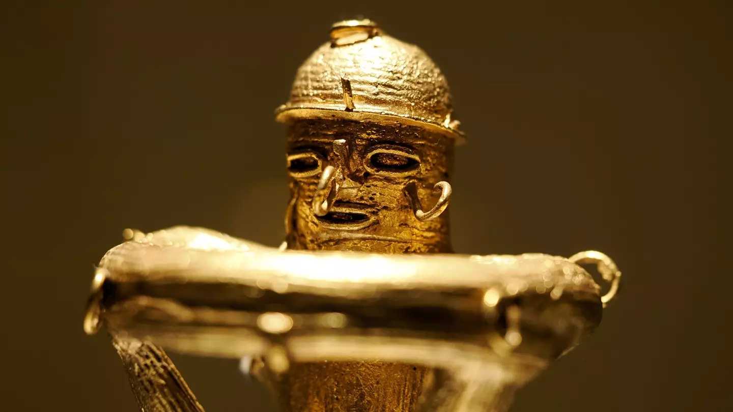 A figurine made of gold on display at the Museo de Oro, Bogotá, Colombia. Andrea Izzotti/Shutterstock
