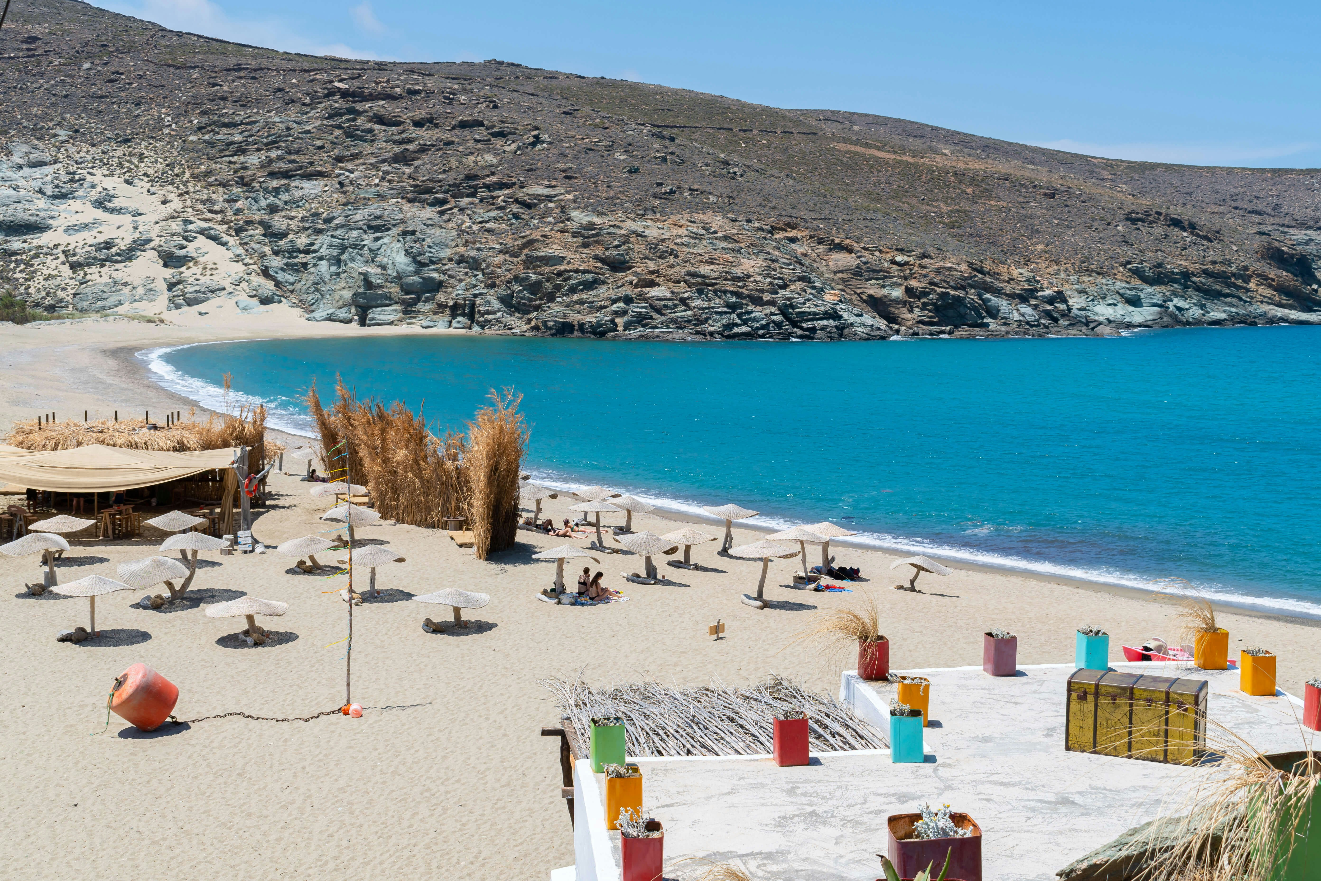 The shape and orientation of this umbrella-dotted bay on the north side of Tinos means it gets knee-high rollers that are spot on for surfers still learning the ropes. The best part? High season for both sun and waves converge here, as it's summer's Meltemi winds that bring the goods. The local surf school operates out of the run-down VW camper that doubles as a beach bar – obviously!