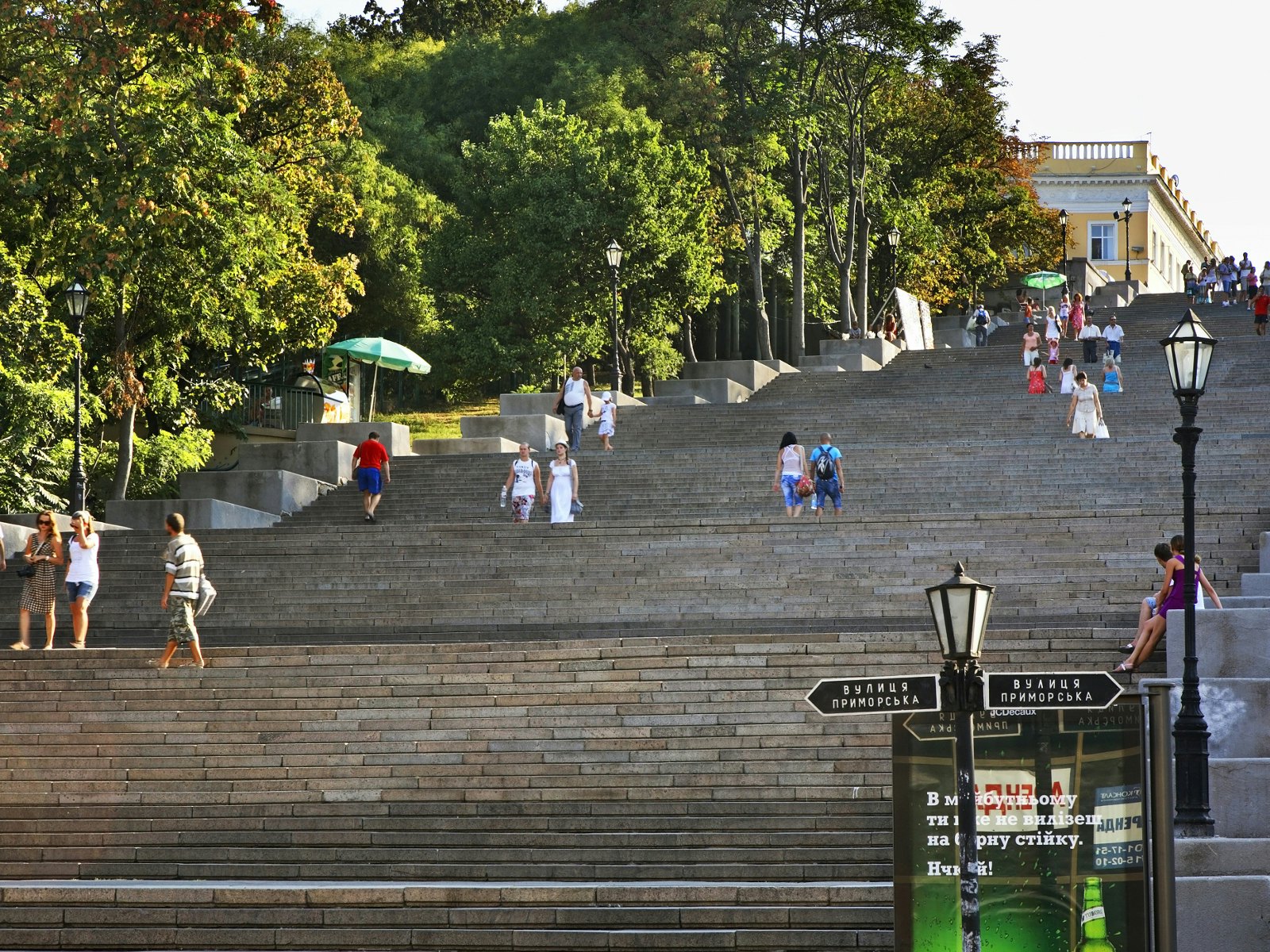 This is a city best enjoyed on foot, so start early with a coffee – or perhaps a kompot (fruity drink) – at Kompot, a trademark Odesa cafe on pedestrian Derybasivska street. A leisurely walk towards the port takes you past a ‘who’s who’ of Odesa’s illustrious ex-residents. Look for the statues of José de Ribas (the Spaniard who built Odesa harbour) on the far end of Derybasivska, beloved Russian poet Alexander Pushkin at the colonnaded City Hall around the corner, and Frenchman Duc de Richelieu (the city’s first governor) on tree-lined Prymorsky boulevard, above the iconic Potemkin Steps.
