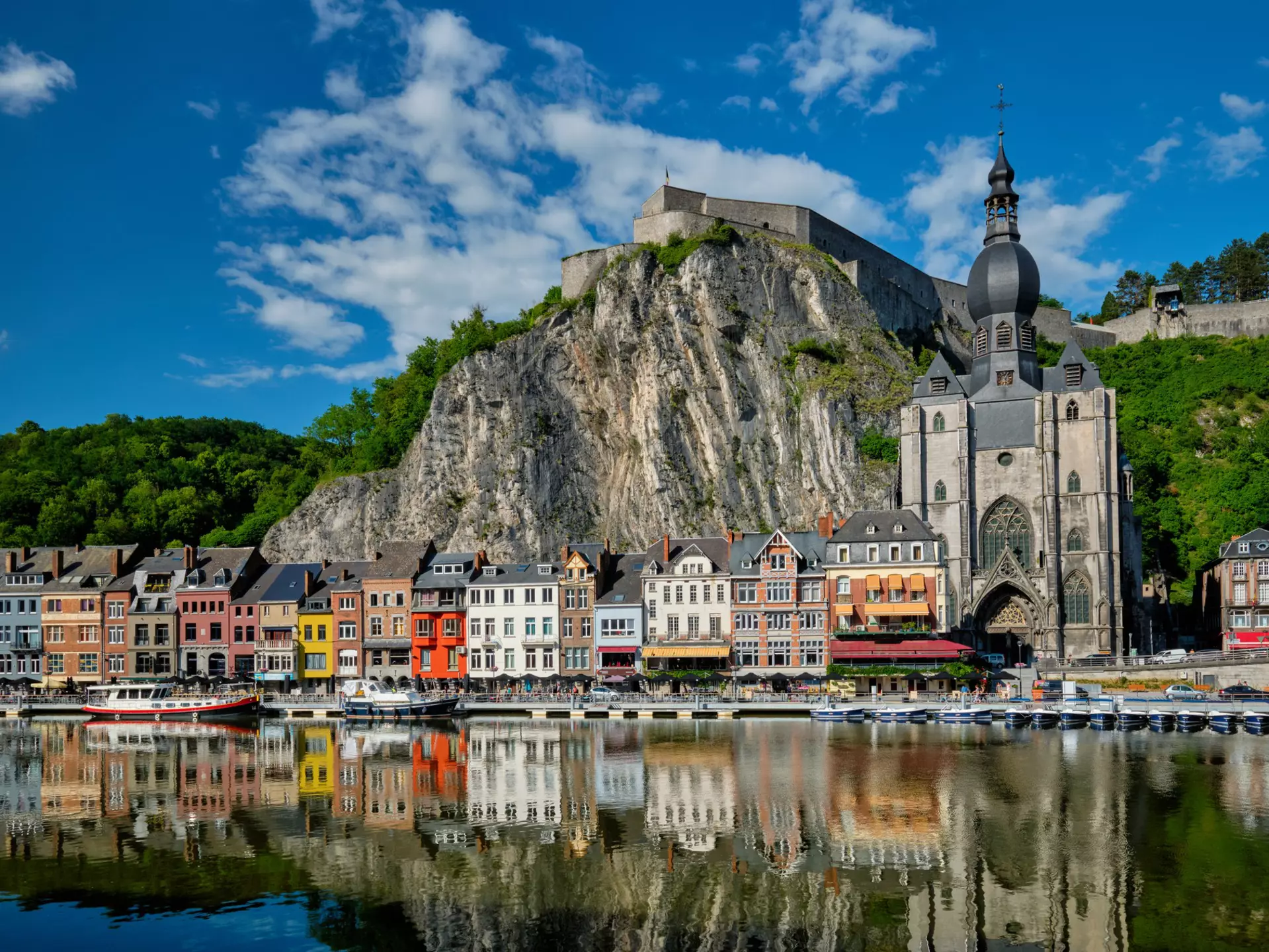 Pleasure boats docked along the Meuse River in Dinant. Getty Images/Flickr RF