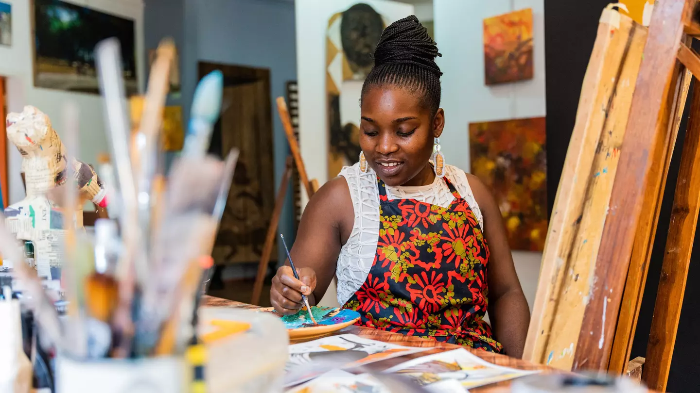 Next, check out work by such Zambian visual artists as Stary Mwaba, Mulenga Chafilwa and more at the stArt Foundation’s 37D Gallery on Middleway St. Mwaba’s large-scale acrylic paintings feature colorful profiles of subjects, while Chafilwa’s mixed-media work often depicts multiple subjects placed in urban settings, and responds to socio-economic themes such as unemployment. Proceeds from the sale of art at 37D go toward funding workshops for disadvantaged children and other social enterprises. Also on the property, Rock Cafe is ideal for an iced coffee or a snack like bacon quiche or chocolate brownie.