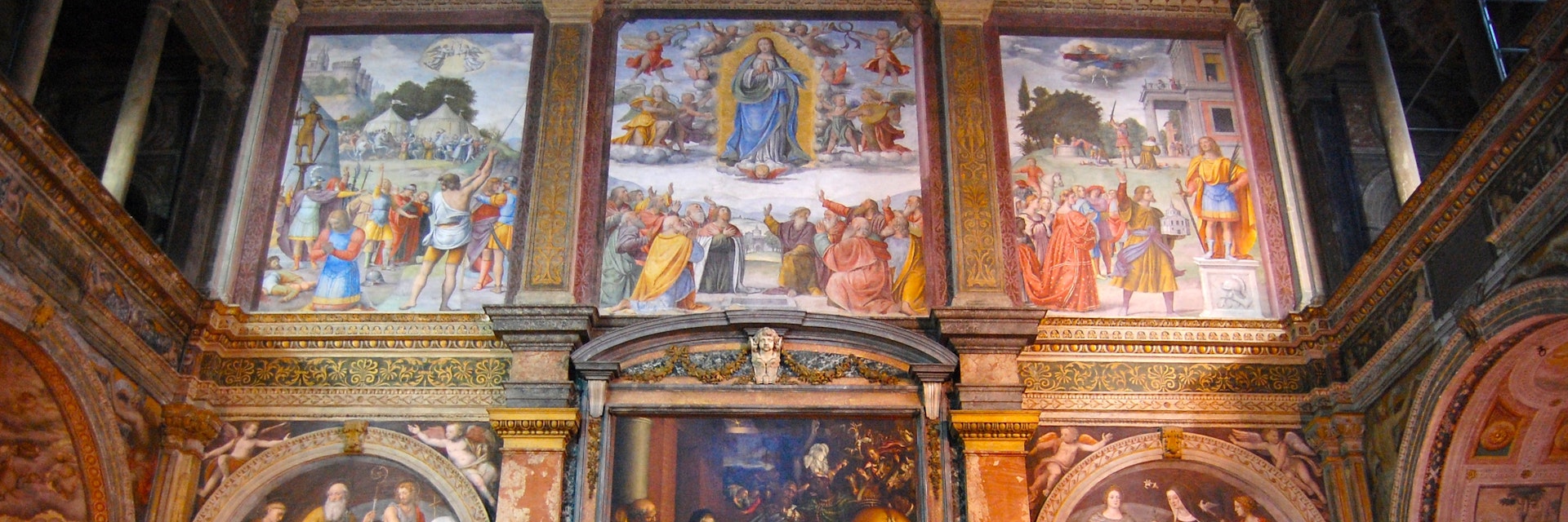 Duck through a small doorway to the left of the altar to enter the secluded convent hall where blissful martyred saints bear their tribulations serenely – note St Lucia calmly holding her lost eyes, and St Agata casually carrying her breasts on a platter.