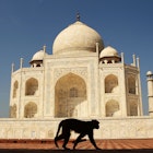 Macaque monkeys are constantly lurking around the Taj Mahal foraging for food. An estimated 25,000 people visit every day and cannot bring food in,…