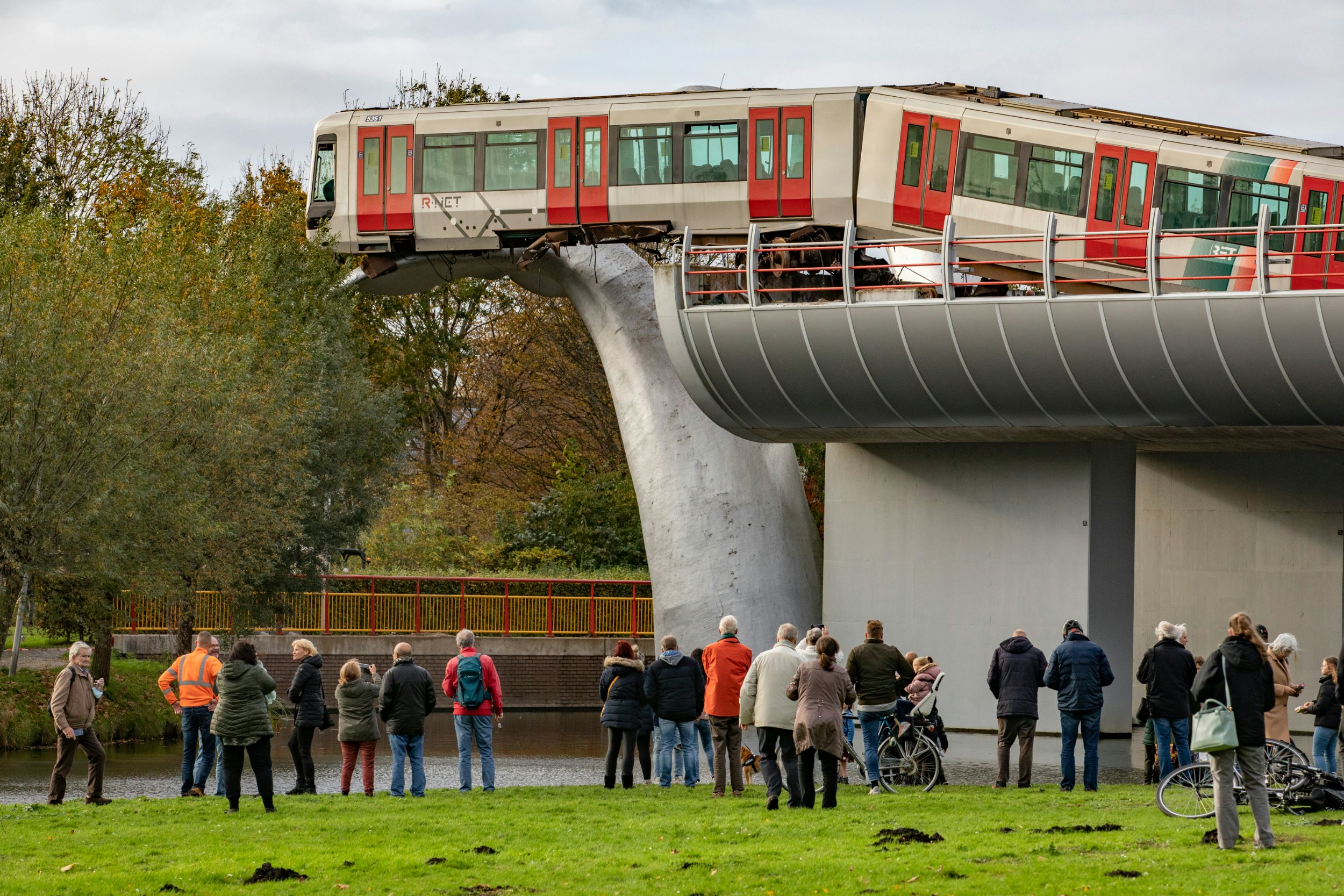 De Akkers is the terminus for two metro routes – C from Capelle aan den IJssel and D from Rotterdam – and at the time of the accident, there were no passengers on board. The driver of the train was uninjured and managed to exit the train after it came to a stop. The track in question lies directly above water and the area can’t accommodate large cranes, adding to the complexity of the delicate removal process. "We are trying to decide how we can bring the train down in a careful and controlled manner," a local safety board spokesman told broadcaster NOS.