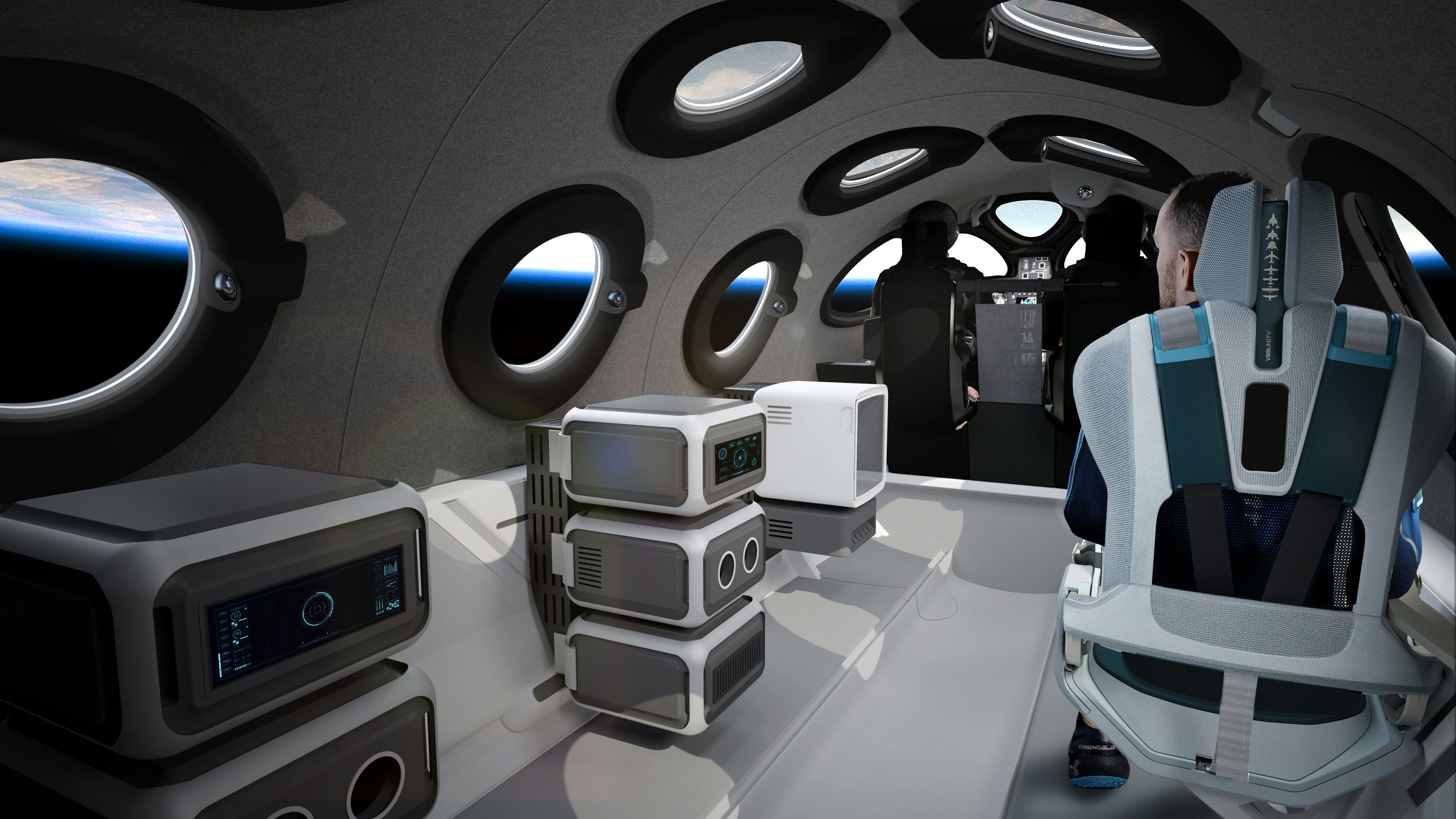 Virgin Galactic has unveiled the design for the passenger cabin of VSS Unity © Virgin Galactic