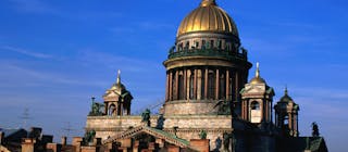 The golden dome of St Isaac’s Cathedral dominates the St Petersburg skyline. Its obscenely lavish interior is open as a museum, although services are held in the cathedral throughout the year. Many people bypass the museum to climb the 262 steps to the kolonnada (colonnade) around the drum of the dome, providing superb city views.