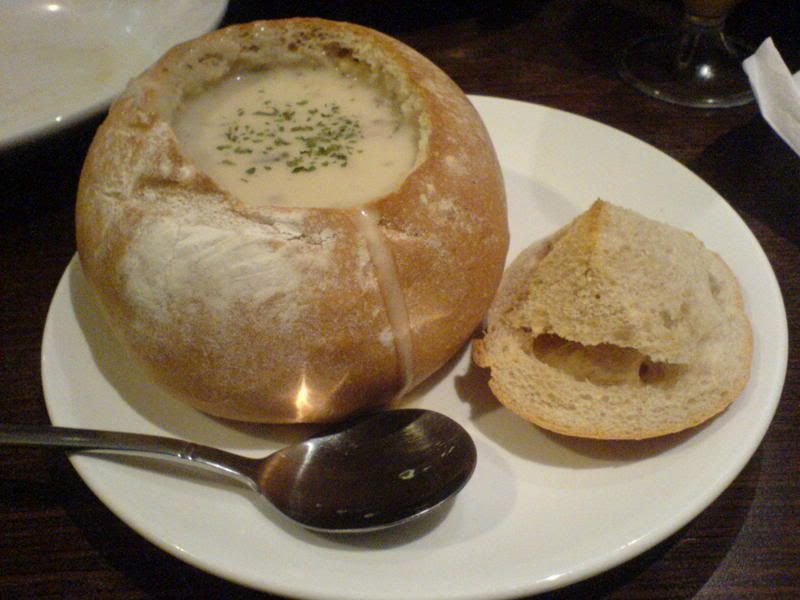 I've seen this a couple of times on tv shows and wondered if the dip is a little dish or if it goes straight into the hole in the bread? I've also seen it with clam chowder