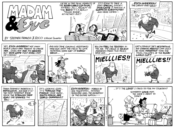 | jenkinstown04:23 UTC20 Oct 2007 | Congratulations to South Africa for winning the 2007 Rugby World Cup.