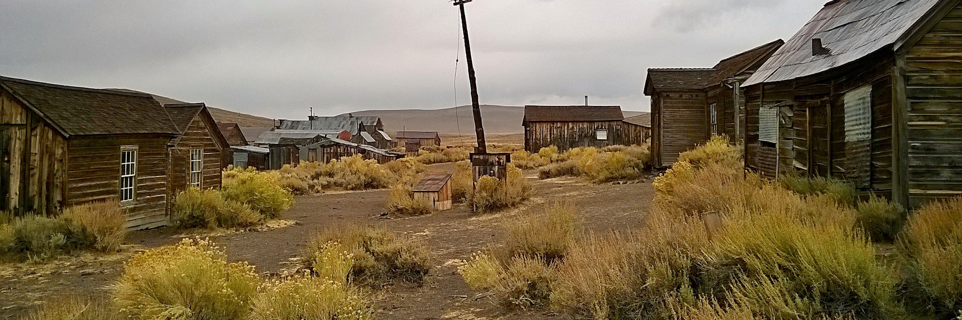 At Bodie State Historic Park, a gold-rush ghost town is preserved in a state of 'arrested decay.' Weathered buildings sit frozen in time on a dusty, windswept plain. To get there, head east for 13 miles (the last 3 miles are unpaved) on Hwy 270, about 7 miles south of Bridgeport. The access road is often closed by snow in winter.